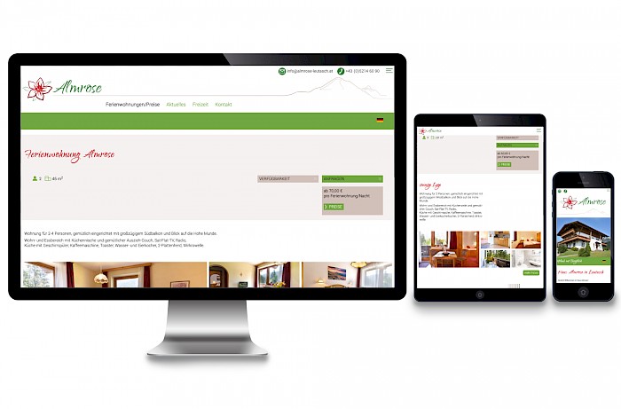 Es ist für uns eine Selbverständlichkeit, dass Ihre Website auf allen Ausgabegeräten optimal dargestellt wird und einfach zu bedienen ist. D.h. die Website passt sich an jedes Ausgabegerät, wie z.B. Smartphones oder Tablets an. Auf großen Monitoren erscheint die Seite großzügig, Bilder sind groß zu sehen, auf Tablets ist die Homepage an das jeweilige Format angepasst. Bei Smartphones und Tablets ändert sich die Anordnung von Texten und Bildern automatisch, so dass nicht ständig gezoomt werden muss. Auf Handys erscheint Ihr Auftritt im dafür sinnvollen Format. Texte, Bilder und Menüs stehen untereinander.
